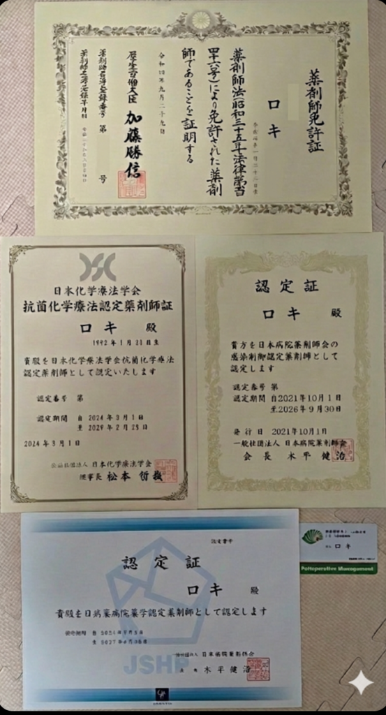 はじめまして、ロキと申します。 病院に勤務する、現役の病院薬剤師です。 現在は以下の専門資格を持ち、感染対策・感染症治療や手術室内での業務(周術期管理)の現場で活動しています。