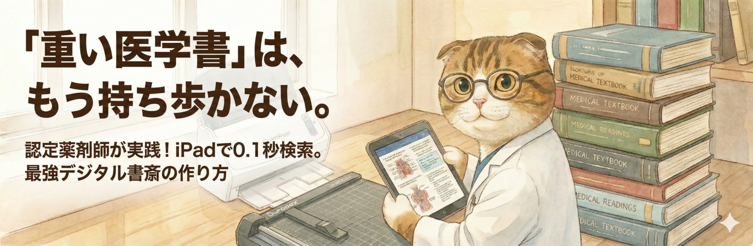 そこで効くのが、ScanSnap×裁断機で作る「自炊(個人利用)」の学習環境。ゴールはシンプル:医学書棚を、iPad/PCで“検索できる状態”にすることです。